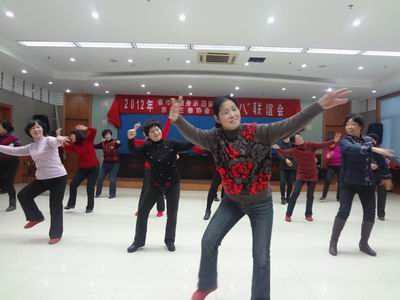 “欢乐,欢乐中国年,欢乐,欢乐中国年······”歌声阵阵,红绸飘飘,这是金坛市木兰拳为庆“三八”于2月25号在市体育馆举行庆祝的欢乐场面。