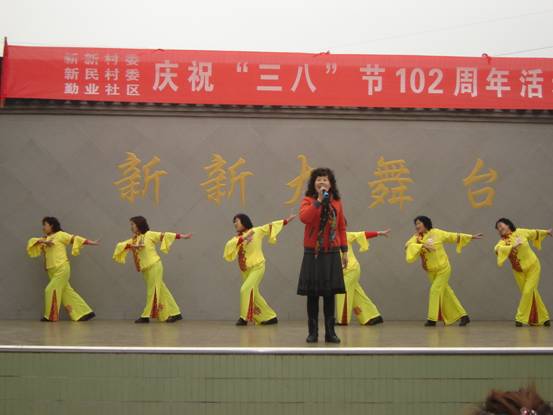 在“三·八”国际劳动妇女节102周年来临之际,3月2日下午,在新新文化活动中心,新新村、新民村、勤一社区共同为妇女朋友们献上了一台精彩的文艺演出。新新村的妇女代表及村民100余人参加了活动。