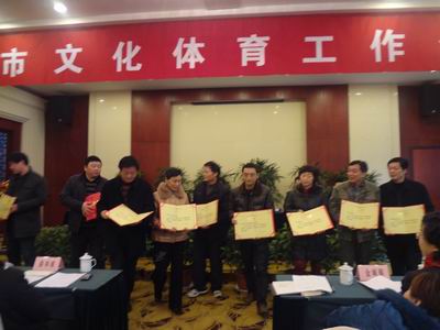 会上,由文广体局贺进军局长作了2011年工作回顾,并对2011年涌现出来的先进集体和个人进行了表彰,我市老年体协被评为“先进集体”、气功健身协会会长李秀红被评为“先进个人”。
