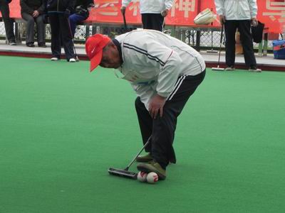 一方稚气未脱,却生龙活虎;另一方两鬓斑白,老当益壮。如此老少对阵,难得一见。场上喝彩声、赞扬声交织,热闹非凡。在场的所有门球爱好者,无不被少儿队的精彩表演折服。少儿门球是何留小学的办学特色之一。去年该队代表武进参加省赛,崭露头角。今年在叶晨光教练的精心指导下,球技又有长足进步,不久将再次代表武进出征。为了锻炼小队员的临场经验,叶教练决定以赛代训。何留小学陆校长邀请了淹城队、何留社区队和湖塘片各个门球队长临时组建的两个队与之一一对阵。在众多老将面前,小队员们如初生牛犊,毫不怯场。最后以五赛三胜的成绩圆满结束比赛。