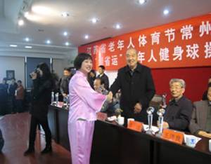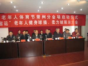 四月二十日上午在常州春秋假日酒店大会堂,市体育局、市老年体协举行了江苏省老年人体育节常州分会场启动仪式。同时组织进行“迎省运健身球操、柔力球展示大会”。常州市体育局领导、常州市老年体协和各辖市区老年体协的领导带领十八支健身队参加大会。会上市老年体协郑学书副主席作了热情洋溢的讲话,他说,江苏省第十七届运动会今年在常州举行,是对实施“全面健身计划”再一次推动,是我们老年人“我运动,我健康,我快乐,我长寿”活动的再一次展示和交流,我们要借此机会,积极参与,热情投入体育健身活动,做健康老人,为省运加油、为文明城市,和谐城市作贡献。