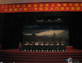 2010年10月23日至25日,由江苏省体育局、江苏省老龄办、江苏省体育事业发展基金会和江苏省老年人体育协会主办,由苏州市体育局、苏州市老年人体育协会和苏州市门球协会承办的2010年江苏省“江苏银行杯”千队万人门球大赛总决赛在苏州市桂花公园门球场隆重举行。本次总决赛之前已进行了两个阶段的比赛,第一阶段是以各市所属县(市、区)为单位比赛,第二阶段是以市为单位比赛,第一阶段前两名的队才能参加第二阶段的比赛,第二阶段的冠军队参加总决赛。我区老年人门球队经过激烈角逐,不负众望,以全市最小的参赛阵容一举夺得常州赛区比赛第一名,并代表常州市参加在苏州举办的总决赛。