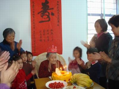 当社区书记谢秋华和社区主任江雪共同为老人送上特意订做的生日蛋糕,点上蜡烛,小志愿者们齐声唱起“祝你生日快乐!祝你生日快乐!”的生日祝福歌时,徐润文老人笑得嘴都合不笼了,不住地拍手鼓掌,在大家的热情感染下,老人也开心地唱了一首“学习雷锋好榜样”助大家的兴,拍着手掌接受大家的祝福,感受社区大家庭的幸福温暖。老人的小女儿王明蓉由衷地感谢社区给予的帮助和关怀,因为从去年1月开始,西三村社区“居家乐园”每天都会给徐润文老人提供一份免费的午餐,老人虽然年纪大了,但胃口很好,每次盛饭,工作人员都要把饭装得满满的。遇到老人身体不舒服时,只要王明蓉打个电话,“居家乐园”的工作人员都会特意做点绵软可口的饭菜给老人送去。说到这些,老人和她女儿拉着社区书记和主任的手,一个劲地说着感激的话。社区工作人员向老人送上深深的祝福: “祝愿老人寿比南山,福如东海!身体健康!永远幸福!”并表示,今后将一如既往的关心老人,帮助解决一些实际问题,在其乐融融的欢笑和祝福声中,徐润文老人度过了她一个令她难以忘怀的百岁寿诞。