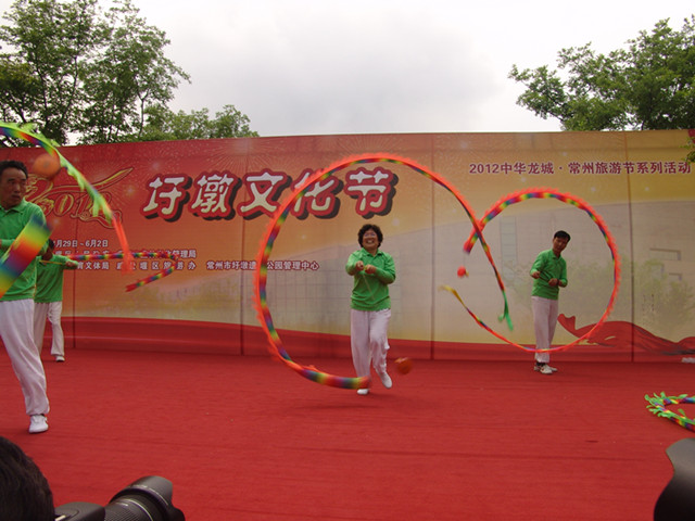 区老年体协以及各群众文体社团表演了多姿多彩的舞蹈《好日子》、《红梅赞》、《和谐中国》等,具有民族传统文化特色的锡剧《太湖儿女》和京剧《咏梅》得到了戏剧爱好者的青睐,抖空竹《喜洋洋》更是引吸了观众朋友的眼球,表演的10多位中老年人时而将空竹绕着身子旋转,身体360度转圈,线绳圈上的空竹不断上升,平稳旋转;时而将飞龙空竹抖到头顶,翻转身体,条条飞龙空竹在空中飞舞、旋转,展示“龙的传人”的独特风采……精彩的表演博得了现场观众阵阵热烈的掌声,与会领导和戚区居民一起饶有兴致地观看了开幕式文艺演出。