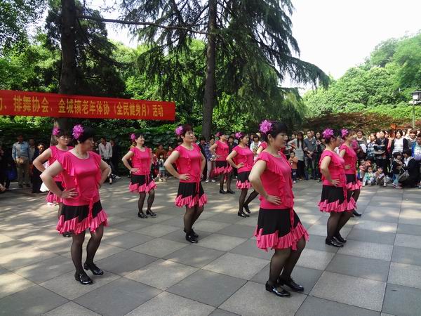 充满激情的排舞:《串烧希腊女神》、《成吉思汗》和柔情似水的《姑娘姑娘你要嫁人》及刚在5月3号—6号参加江苏省气功比赛获得前四名的健身气功《易筋经》等节目的展示得到了游园观众们的阵阵掌声。