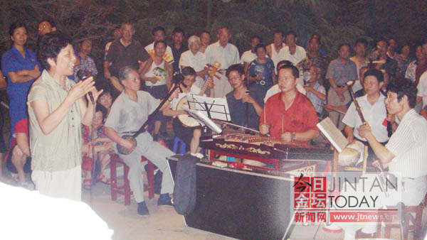 这天傍晚,人们早早来到广场,把文体展示台围的水泄不通,现场气氛十分热烈火爆。演员们台上演得认真投入,观众们台下看的专注入神。演出的节目有传统锡剧《珍珠塔》、《孟姜女》、《拨兰花》中的几个脍炙人口的经典唱段。有自编自演的《清洁工》和《婆媳情》,还有《扇舞》、《彩绸舞》和《健身操》展示。他们的精彩表演,博得了观众的阵阵喝彩和掌声。60多岁的拆迁户王先生激动地说:“以前,我们住在乡下,连上街进城的次数都很少,更不要说看戏了。现在搬到城郊现代化的小区集中居住,老干部“夕阳红”文体演唱团就来为我们唱戏、表演,真是太好了,太高兴了。”拆迁户郭女士说:“老同志的舞蹈表演真是太精彩了,想不到他们都这么大年纪了,身材还这么好,腰板还么柔软,我也要加参加他们的队伍。”