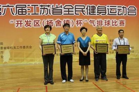 经过三天的激烈角逐,第六届省全民健身运动会“开发区(杨舍镇)杯”气排球比赛于2012年5月23日上午在张家港体育馆圆满落幕。