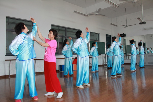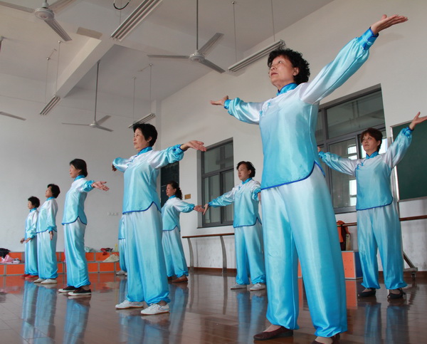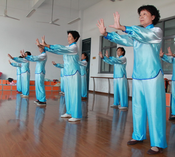2012年5月30日就要参加常州市老年体协主办的老年人健身气功展示演出了,天宁区青龙街道健身气功代表队钱凤珍、高彩凤、夏琴华、王荷凤等队员正在虹景小学的舞蹈房内作赛前的最后一天集体演练。
