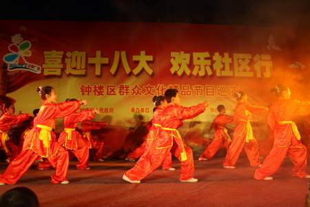 晚会上,10多个各具特色的节目轮番登台,既有充满时代气息的励志歌曲又有深受喜爱的京剧选段;既有社区老年居民带来的《敦煌舞》,又有荆川小学的小朋友们表演的《阳湖拳》,在短短一个多个小时的演出中,演员们唱得声情并茂、演得十分投入,举手投足间做足了“范儿”,观众们也看得入神入迷。参加此次文艺晚会演出的演员大部分是来自各个社区的普通居民,这些来自基层的文艺骨干纷纷登台献艺,吹拉弹唱、载歌载舞,一支支优美的歌曲唱美了永红大地,一个个舞蹈跳出了心中喜悦,他们尽情表达着对街道的热爱之情,纵情演绎着对新生活的幸福感受。