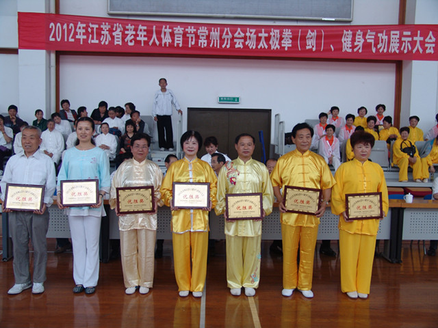 年间佳处惟五月,夏浅胜春最可人。2012年5月30日上午,由常州市体育局、常州市老年人体育协会主办的2012年江苏省老年人体育节常州分会场太极拳(剑)、健身气功展示大会在市委党校体育馆隆重举行。数百名来自市、区、各街道14支代表队的领队、运动员、裁判员欢聚一堂,相互观摩,共同提高。