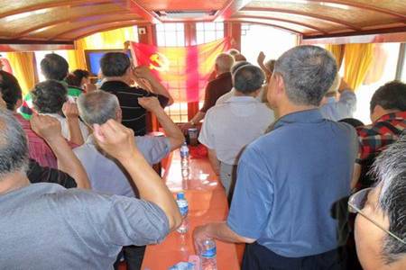 千百年来,古老的运河是常州的母亲河,人文资源丰富,名胜古迹众多,是一部承载常州历史文化的宝典。当今的常州古运河,正成为一条融风景名胜和历史人文景观于一体的旅游景观走廊。党员们乘画舫船游览古运河,沿岸浏览了大码头、毗陵绎、篦箕巷、篦梁灯火、文亨桥、西瀛门明代城墙,体验了水乡常州的文化底蕴,游览了东坡公园码头。在船上全体党员举行了重温入党誓词宣誓仪式,面对鲜红的党旗,全体党员再一次举起右手,立下自己对党忠诚的誓言,表达了为党的事业奋斗终身的决心和愿望。党员们还用演唱红色歌曲的形式迎接了我们党91岁华诞,歌颂党的丰功伟绩。半天的行程,丰富而不失人文内涵,让参加活动的新老党员共同见证了常州的发展变迁,感悟了家乡常州的魅力。党员们纷纷表示此次活动安排的非常特别,大家不仅欣赏了大自然的风光,也从心中舒发了对党和祖国的爱。党员们在感受旅行带来快乐之时,彼此之间又进一步的熟悉,情感得到了更好的交流,增进了邻里之间的友好关系,提高了社区党委的凝聚力。