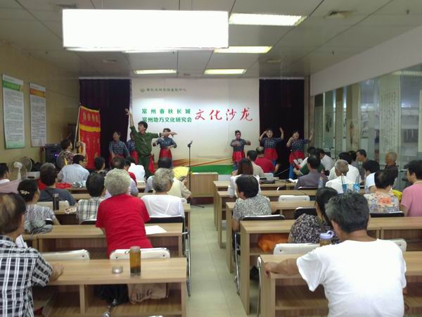 2012年7月14日下午二点,虽然天气不好,但是常州市天宁区小东门桥社区文艺爱好者仍然冒雨前往春秋长城文化沙龙,小东门桥社区“秋之韵”艺术团专场演出正在隆重上演,社区京剧沙龙队、同心乐队队员冒着酷暑,经过数月的辛苦排练,社区戏曲、器乐爱好者积极参与,为社区居民奉上了丰富多彩的节目,有现代京剧《红云岗》、《毛主席诗词》、沙家浜片段《军民雨水情》、《智取威虎山》;传统京剧《三娘教子》、《锁麟囊》、《我们是工农子弟兵》、《淮河营》、《贵妃醉酒》、《太真外传》;还有社区同心乐队的器乐合奏:江苏民歌《花儿与少年》、萨克斯独奏《情人的关怀》、《欢庆舞曲》、单簧管高音萨克二重奏《含苞欲放》、大合奏《送你一支玫瑰花》;还有多才多艺的队员为大家表演了藏族舞蹈《洗衣歌》。