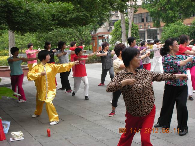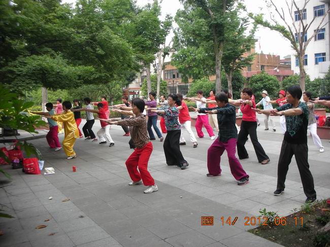 金坛市老体协、健身气功协会近日联合在华罗庚公园香榭丽咖啡屋前开设健身气功"导引养生功十二法"教学培训。