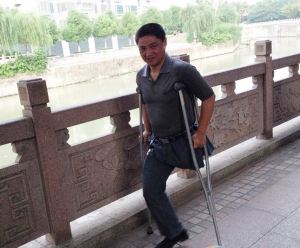 这位被市民们称为独腿跑步的铁腿名叫黄建理,今年44岁,家住溧城镇煤建路,他在1995年27岁那年在上黄一家水泥厂操作时,不幸一条左腿被机器轧断,从此在家休养了几年。2003年他来到溧阳电缆厂工作,4年以后,病退回家。回家后,就用厂里赔偿的20万元钱在城里煤建路买了一套房子,过起了市民生活。2008年,他享受低保待遇,今年开始由于他领到了每月538元的养老金,于是不再领低保费了。