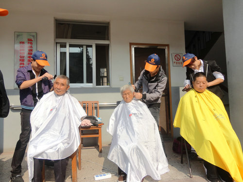 上午在翠竹新村寿星宫,志愿者们关切地询问了老人们的身体和生活状况,在真挚的祝福中,一边,志愿者们将提前准备好的重阳糕一一送到老人的手中,并衷心地祝福老人们身体健康、合家幸福;另一边,志愿者们开始为老人们免费理发。此次走访慰问活动使得这些老人们感慨万分,纷纷表示感谢社区的关心和照顾。