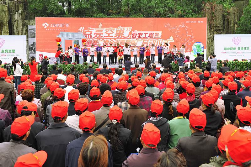 2012年10月30日上午,在风景秀丽的溧阳市天目湖湖畔隆重举行“点亮空巢”爱老工程暨江苏健康广播全省覆盖推广启动仪式。数百名志愿者代表参加了启动仪式。