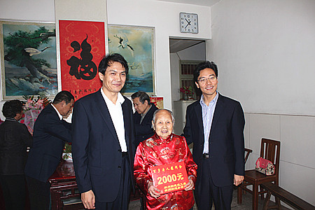 最后,徐旭东书记和李方平主任与老人一起切下了生日蛋糕,手捧着蛋糕,两位党政领导禁不住喜悦的心情,齐声、动情的说道:“老人家,祝您生日快乐,健康长寿!”。