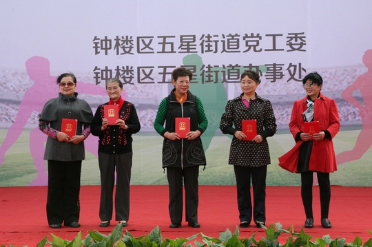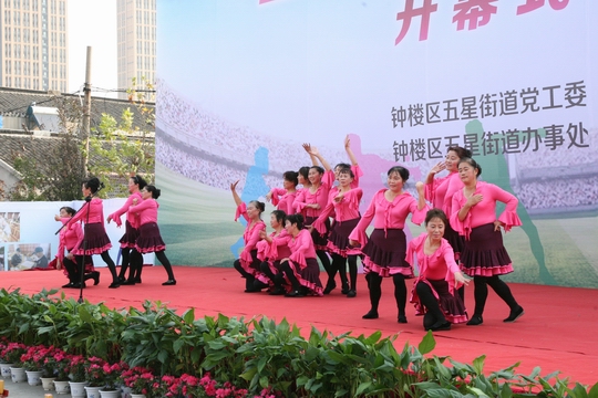 开幕式上,五星街道党工委书记钱小峰致辞。张晓平、何海平、王济良、钱小峰分别为获得“江苏省全民健身活动先进单位”、“江苏省优秀群众健身活动点”等荣誉称号的代表颁奖;潘冬铃、任洪兴为街道优秀团队颁奖。五星艺术团、勤德艺术团、新中村健身队分别表演了《跳动的音符》、《扇韵飞扬》、《健身手杖操》等节目。