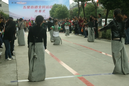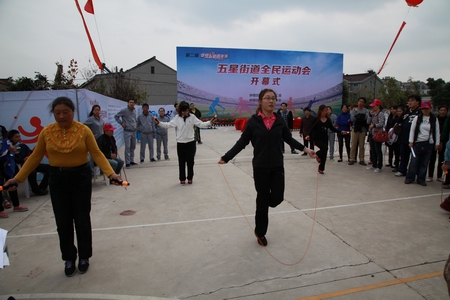 “趣味化”是本届常州钟楼区五星街道全民运动会重点突出的办赛理念,所以除了对抗紧张激烈的竞技类项目,群众喜闻乐见的趣味项目也是本次运动会的重要组成部分。2012年11月3日上午,拔河、跳绳、袋鼠运瓜等三项趣味运动比赛如期举行。