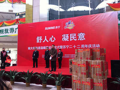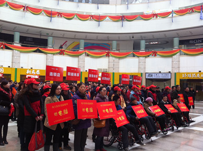 12月26日上午,南大街街道在莱蒙星聚广场隆重举行“舒人心、凝人意”南大街街道温暖周、苏宁“二十二”周年庆、“1+1”阳光行启动仪式,参加启动仪式的有钟楼区副区长冯素俊、钟楼区残联副理事长何锦芬、南大街街道办事处主任吴伟、常州苏宁电器总经理茅俊、江苏省烟草公司常州市公司副主任马洁及残疾人家庭代表、苏宁电器志愿者等。