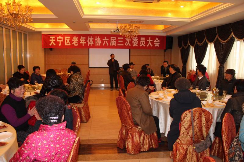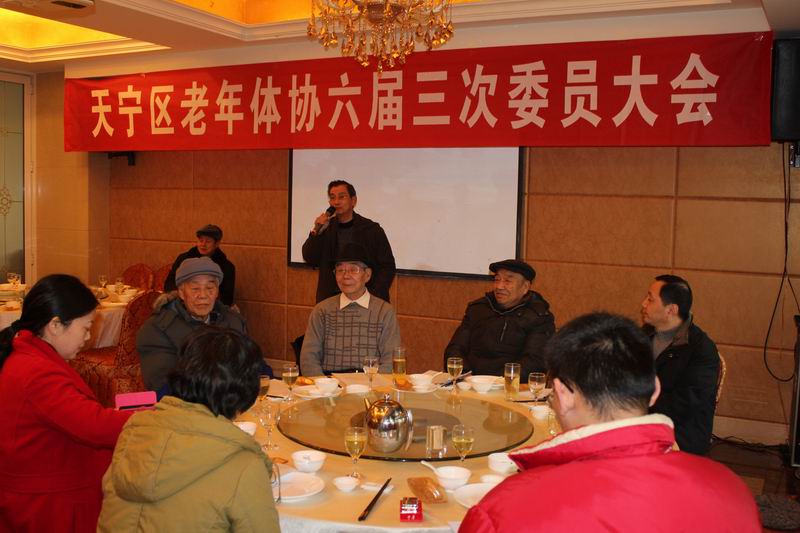 常州市天宁区老年体协于1月上旬在市丽豪大酒店召开2013年区老年体协工作年会,参加人员有区六个街道(茶山、青龙、红梅、天宁、雕庄、兰陵)老体协负责人以及区各健身团队代表。区政府、区教育文体局等领导也应邀到会。
