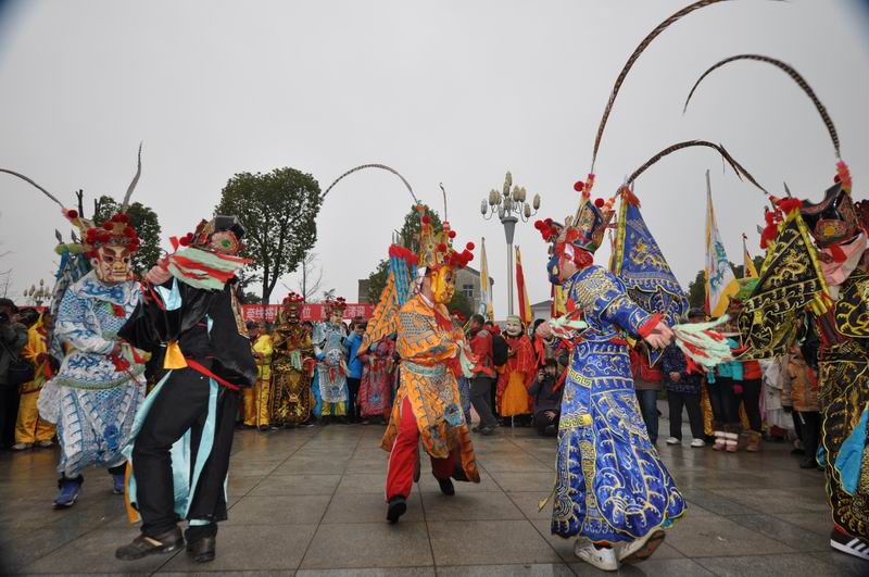 2013年2月17日上午,江苏省溧阳市社褚镇人民广场上人山人海。这里正在举行该镇第十四届民族文化艺术节,马灯、跳幡神、跳观音、冻煞窼、舞龙、旱船、祭鼓、舞狮等15种民族文化艺术队的精彩表演吸引了社褚镇万名群众观看。