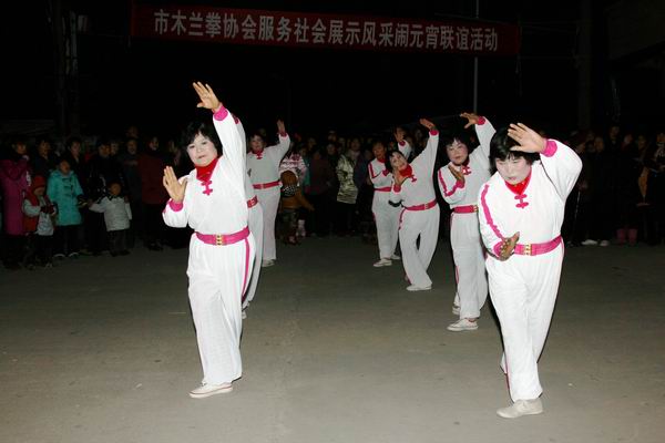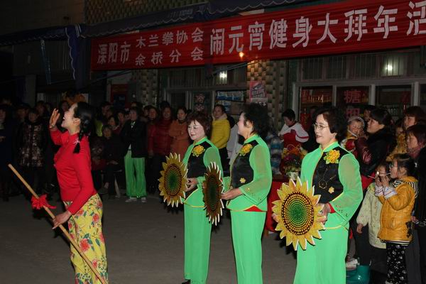 正月里来是新春,十五花灯闹乾坤。2013年2月23日正月十四溧阳市木兰拳协会、竹箦镇余桥分会会同市社会体育指导员协会、市老年大学健身舞和戏曲班的师生、在竹箦余桥村举办了服务社会、展示风采闹元宵村民联谊活动。