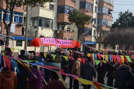 元宵节阳光明媚,常州钟楼区勤业一社区广场彩旗飘扬,锣鼓喧天。社区在此举办“欢天喜地闹元宵”年俗活动,社区居民欢聚一堂,舞双龙、猜灯谜,共同庆祝元宵节的到来,此次活动吸引了近百位居民的参与。