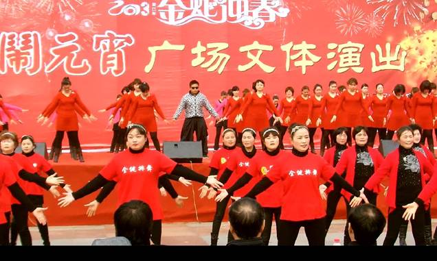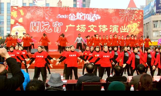 一场由金坛市委宣传部、市文广体局、市文联主办,市文化馆承办的“2013金坛蛇年迎春闹元宵”广场文体演出在金沙广场隆重举行,吸引了众多市民前来观看。文体演出在舞蹈“欢天喜地大拜年”中拉开帷幕,接着歌舞、体操、抖空竹、排舞等都齐聚一堂,各展才艺。其中由排舞协会百余人参加表演的骑马舞“江南Styie”场面最为壮观,激情的表演获得了观众最喜爱的节目好评,把文体演出推向高潮,给市民带来了快乐和幸福,让人们在欢歌笑语中欢度元宵节。