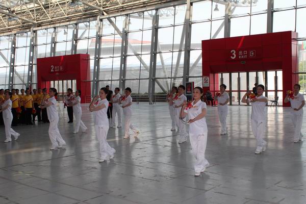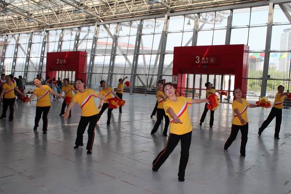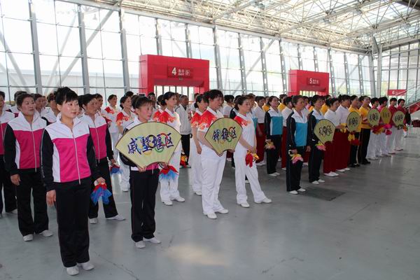 常州市第十四届运动会暨第一届全民健身运动会老年人部健身球操比赛,2013年4月22日在奥体会展中心开赛。