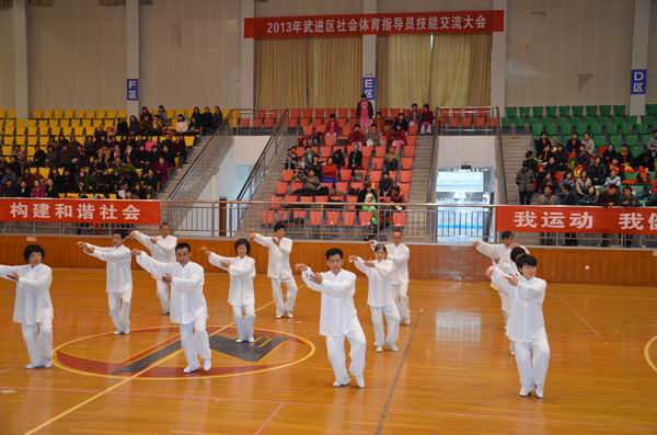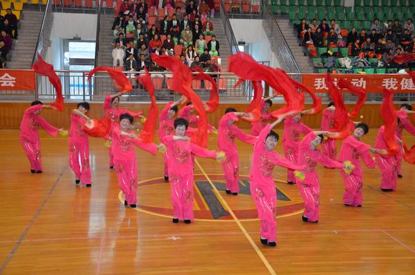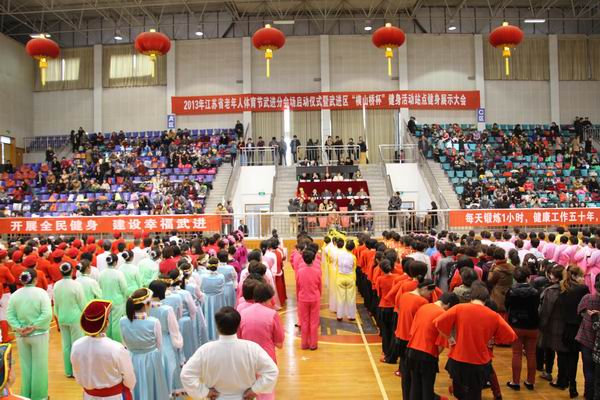 2013年4月20日,2013年江苏省老年人体育节武进分会场启动仪式暨武进区“横山桥杯”健身活动站点健身展示大会在在横山桥高级中学体育馆举行,来自全区49个健身站点1000余人参加了展演活动.此次活动由武进区体育局主办,横山桥镇人民政府、区秧歌协会、区老年体协承办,江苏宇江化工建材公司协办。(武进老体协供稿)