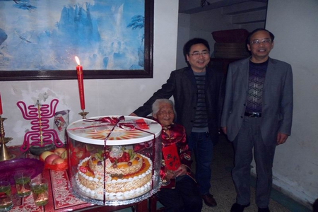老人生日那天,汤家村委党总支书记吴亮兴和村委主任袁雅平为老人送上鲜花,生日蛋糕和礼金一万元,吴书记亲切地询问老人的身体状况。老人虽然年已过百,但口齿清晰、思维敏捷。杨素珍老人的儿子潘荣会介绍说,“老人胃口一直不错,身体现在还硬朗得很。”虽已是百岁老人,手脚仍和年轻时候一样利索,非常爱干净。只要是自己能动手完成的事,老人坚持不放手于人。没事的时候还经常外出散步。吴书记问起老人的长寿秘诀,老人笑着说:“我年纪这么大,除了靠子女的照顾,邻居的关心,更重要的是乐观和开朗。(谈建荣/邱峰)