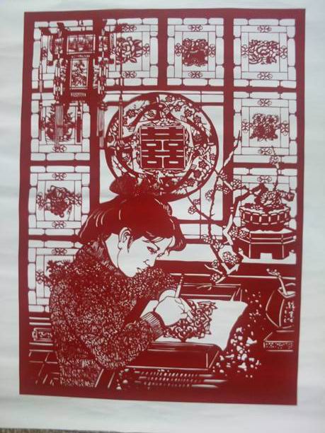展出的全部作品都出自20多位剪纸研修班学员之手,他们最大的89岁,最小的也近60岁。他们心灵手巧,心手相应,用一把剪刀,一把刻刀,剪刻出了大自然的万紫千红,人们的心灵对话,人间的健康和谐。他们为传承民间艺术去追求、探索、寻觅,剪出美好夕阳红。(姜锡生)