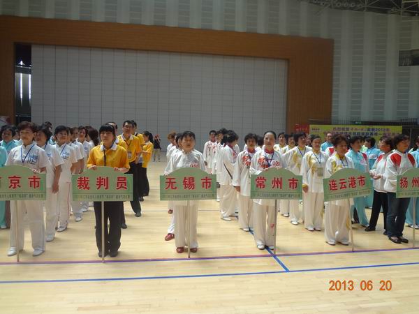 金坛市老年体协于2013年6月19—21日,率市健身气功队代表常州市参加了在盐城市举办的2013年江苏省老年人体育节“体彩杯”健身气功比赛。