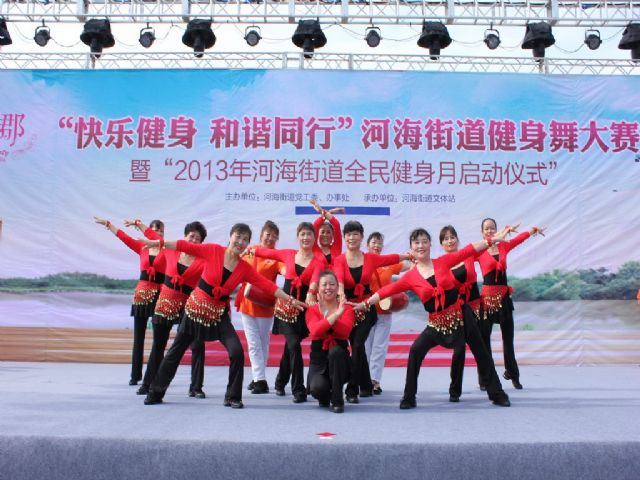 2013年7月4日上午,常州市新北区河海街道健身舞大赛决赛暨2013河海街道全民健身月启动仪式在新区公园北广场举行。