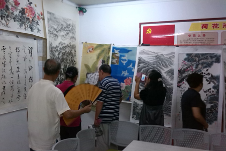 钟楼区荷花池社区举办“庆国庆 迎花博 名家名画展”