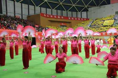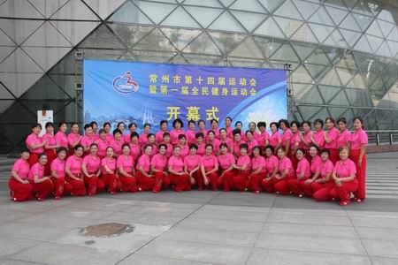天宁区红梅街道选派了以钱佩芳老师为首的天娇舞蹈队参加了此次开幕式。在《叫我如何不想他》的音乐声中,60名天娇舞蹈队队员身着红色裙装,手持粉色舞扇,翩翩起舞,将木兰扇舞发挥得淋漓尽致。木兰扇是集体操、舞蹈、武术于一体的健身项目,动作刚柔并济,既有舞蹈的优美,又有武术的刚强,观赏性很强。队员们平均年龄62岁,平时忙完家务就挤出时间参加舞蹈训练,天娇舞蹈队曾多次获得省、市老年体育活动荣誉称号。