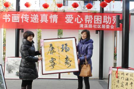 据介绍,清溪路社区是一个残疾人、老年人、下岗工人较多的老小区,光残疾人就有132人。在过去的几年中,清溪路社区从居民最关心、最直接、最现实的需求出发,坚持居民热情参与,志愿者积极行动,充分动员社区爱心人士,创新服务方式,打造了别具特色的爱心品牌系列:爱心钟点工、爱心作坊、爱心门铃、爱心生日宴、爱心阳光驿站、爱心食堂这六大载体的创新和成功运作以及“爱心之家”的成立,受到了上级领导和广大居民群众的高度评价。其中,为了缓解社区残疾人群体就业难的问题,2007年成立了爱心作坊,组织社区残疾人参加丝网花培训,为丝网花销路问题,社区工作者组织爱心义卖、上门推销,义卖收入改善了残疾下岗失业人员的生活状况。这次该社区以爱心书画义卖的形式,推出社区的又一爱心品牌——爱心助残基金。希望通过这次活动让更多的人参加到关爱弱势群体的队伍中,让“爱心”永驻清溪路社区。