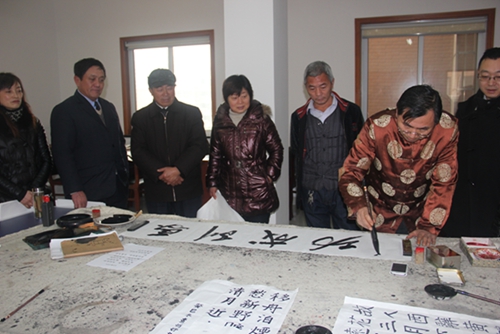 据介绍:为体现中华民族敬老爱老的传统精神,树立尊重退休老同志、关爱老同志的良好社会风尚,丰富社区退休职工精神文化生活,盛世华城社区居委会和溧阳市社会保障服务中心于春节前夕特组织退休职工在社区举办了一场别开生面的“迎新春•舞文弄墨送祝福”活动。在活动现场,大家饶有兴致地围在本社区著名书法家王建林和他带领的社区青少年书法爱好者周围,欣赏他们挥毫泼墨,书写的“马到成功”、“龙马精神”、“新年快乐”、“万事如意”等祝福的对联。老同志们并不时和王建林就如何练字、练什么体等问题进行了交流。王建林的作品完成后,大家都你争我抢,拿着一幅幅充满祝福的墨宝都乐得合不拢嘴……