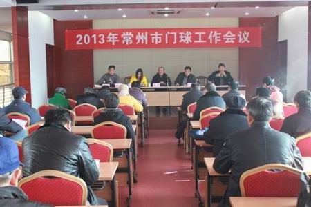 时值三九隆冬,位于翠竹新村的武进区老干部活动中心四楼多功能报告厅内却温暖如春。这里,常州市门球协会正在召开2013年年度工作会议,参加会议的是市门协各团体会员、门球队队长、理事和教练部、竞赛部、宣传后勤部全体工作人员。主席台上,名誉会长薛峰同志(原常州市副市长)端坐中央,会长王向阳、副会长何振华分坐两旁。会议由秘书长傅根才主持,薛峰同志首先发言。他真诚感谢与会人员勤奋务实的工作,为常州市门球运动打下了坚实的基础,鼓励大家继续努力,创新思路,为门球运动更新更好的发展,再作新贡献。接着武进区门协常务副主席杨槐青介绍了推动武进门球运动发展的经验和体会。他指出发展门球运动,第一要想方设法取得领导的关心和支持;第二必须走社会化运作的路子;第三各级协会的领导和工作人员要发扬奉献精神。副会长何振华女士作工作报告,她从自身建设,运动成绩,竞赛活动,出国打球和场地建设等五个方面总结回顾了2013年取得的成绩。秘书长傅根才同志部署了2014年的工作,会长王向阳同志最后讲话,他感谢全体同志卓有成效的工作,决心带领大家向更高的目标奋进。