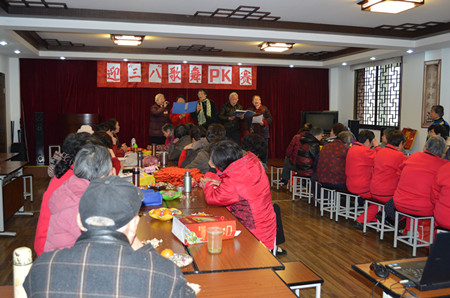 2014年2月25日下午,常州钟楼区锦阳花苑社区“迎‘三八’歌舞PK赛”如期举行,为即将到来的“三八妇女节”预热。 活动在康乐协会表演的歌舞《好运来》中拉开序幕,她们以饱满的精神面貌充分带动了居民们的热情。来自锦阳花苑社区的阳光歌唱队成员平均年龄65岁,她们分成了13组,依次带来了独唱、小合唱、舞蹈......使出浑身解数,表演出自己的拿手好戏,为了增进与居民间的熟悉程度,打造熟人社区,锦阳花苑的工作人员经过精心的排练,合唱歌曲《明天会更好》,将活动气氛推至高潮。最后,阳光歌唱队队长马小英的一曲独唱《美丽的草原》作为压轴赢得了满堂喝彩。 锦阳花苑社区自开展彩色一星期活动以来,文化活动日益丰富、活跃,社区引导群众开展积极向上、健康有益的活动,不仅丰富了社区居民的文化生活,对建设和谐文明的社区起到了积极的推动作用,同时也为锦阳花苑社区重点打造“熟人社区”奠定了良好基础。(霍潞)