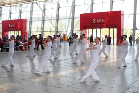 4月2日,在市奥体会展中心举行了由常州市老年人体育协会举办的2014年江苏省老年人体育节常州分会场开幕式暨柔力球、健身球交流大会。场上,来自全市六个区12支代表进行了柔力球、健身球表演。
