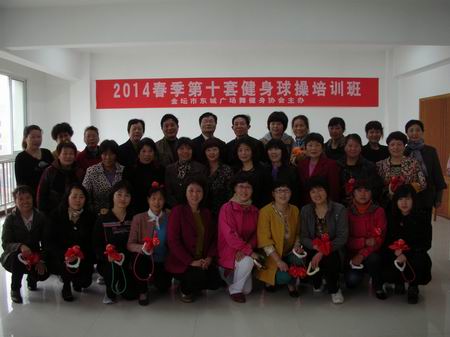4月16日上午8:30,有30多名来自东城街道各体育健身点的精英骨干,聚集在华胜社区4楼排练房,签完到后,人手一个健身球,开始接受为期两天的第十套健身球操的培训和教练。继4月2日代表金坛市老年人体育协会在常州奥体会展中心参加“2014年江苏省老年人体育节常州分会场开幕式暨柔力球、健身球操交流展示大会”,东城街道体育总会属下的东城广场舞健身协会,紧锣密鼓组织策划此次培训班,自购教练用的健身球,寻找培训场地,通知各健身点派员参加。