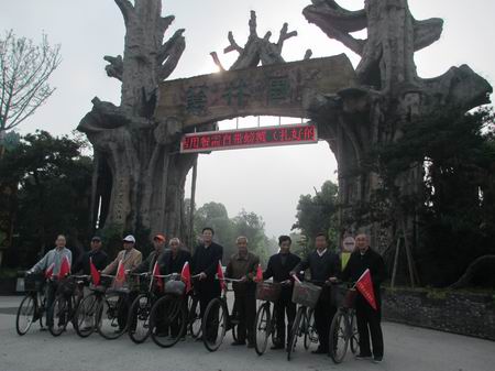 车队以中等速度向目的地——西太湖中国花卉博览园进发。这一天,天气温和、微风习习,路边的花草树木郁郁葱葱,令人心旷神怡。车前飘扬着的小红旗是退教自行车队的显著标志,一路上吸引着众多路人驻足观望,成为了一道亮丽的风景。