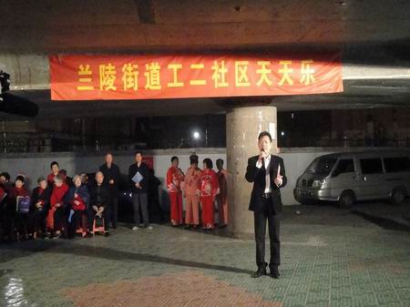 2014年4月25日晚上6点半开始,天宁区兰陵街道工人新村第二社区小广场就吸引来了许多居民。原来,居民们听说今天晚上将在这里举办社区天天乐演出,现场十六个节目都来自自己的邻里,而且社区还特地邀请了获得国家一级播音员资质的社区居民孙阳担任活动主持人。