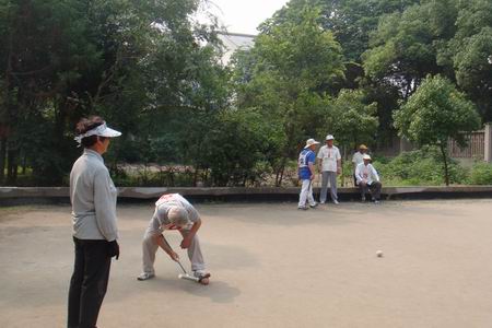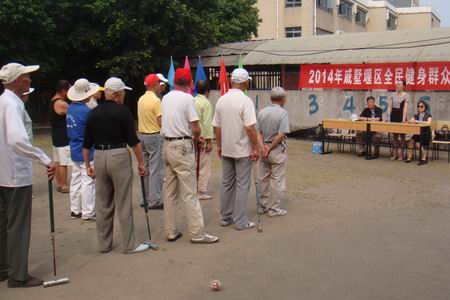 为促进戚区社会和谐,更好地发展老年门球事业,6月12日上午,由戚墅堰区教育文体局、区老年人体育协会联合主办的2014年戚墅堰区全民健身群众体育节门球比赛在戚机厂职校门球场顺利举行,戚区教育文体局文体科科长董彩凤出席活动并讲话,戚区老年人体育协会主席杨玉林宣布2014年戚墅堰区全民健身群众体育节门球比赛正式开始。这是2014年戚墅堰区全民健身群众体育节的第一场比赛。来自全区3支老年门球队18位运动员为切磋球艺、增进友谊齐聚一堂。