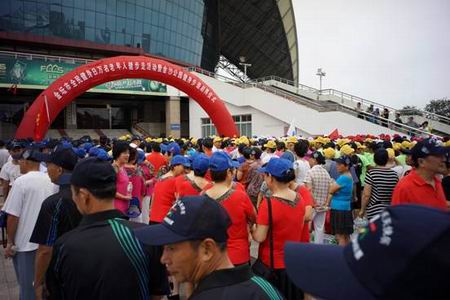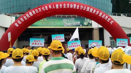 在全国第六个全民健身日的今天,金坛市文广体局、市老年体协在市体育馆隆重举行了金坛市全民健身日万名老年人健步走活动暨金沙公园健步走启用仪式。