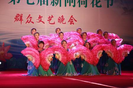 第七届新闸荷花节群众文艺晚会在大型舞蹈表演《和谐圆舞曲》中完美谢幕,舞蹈演员婀娜的舞姿、欢快的节奏伴随着现场观众的热情和祝福,表达了新闸人民对家乡、对生活的满腔热情和政府心系百姓,通过文化惠民活动给辖区广大人民群众带来的实实在在的幸福感和心中所洋溢的阵阵温暖与荷香。(钟楼区老体协供稿)