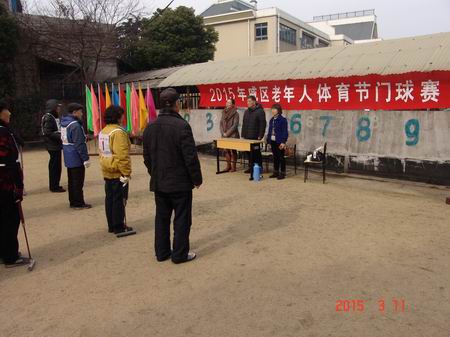 活动由戚区教育文体局文体科科长董彩凤主持,戚区老年人体育协会主席杨玉林发表了热情洋溢的讲话并宣布2015年戚墅堰区老年人体育节门球比赛正式开始。来自全区3支老年门球队18位运动员为切磋球艺、增进友谊齐聚一堂。