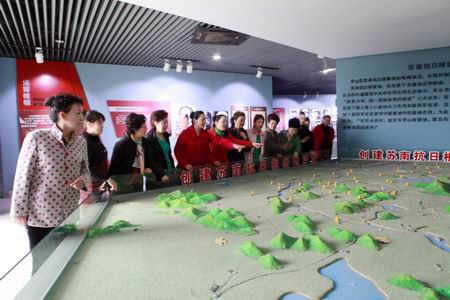 首先,老年大学健身秧歌班的学员和市木兰拳协会的姐妹们一起走进水西村“新四军江南指挥部纪念馆”,大家在讲解员的带领下,怀着无限崇敬的心情,参观了纪念馆:缅怀革命前辈的丰功伟绩,寄托自己的思念和祭奠之情。